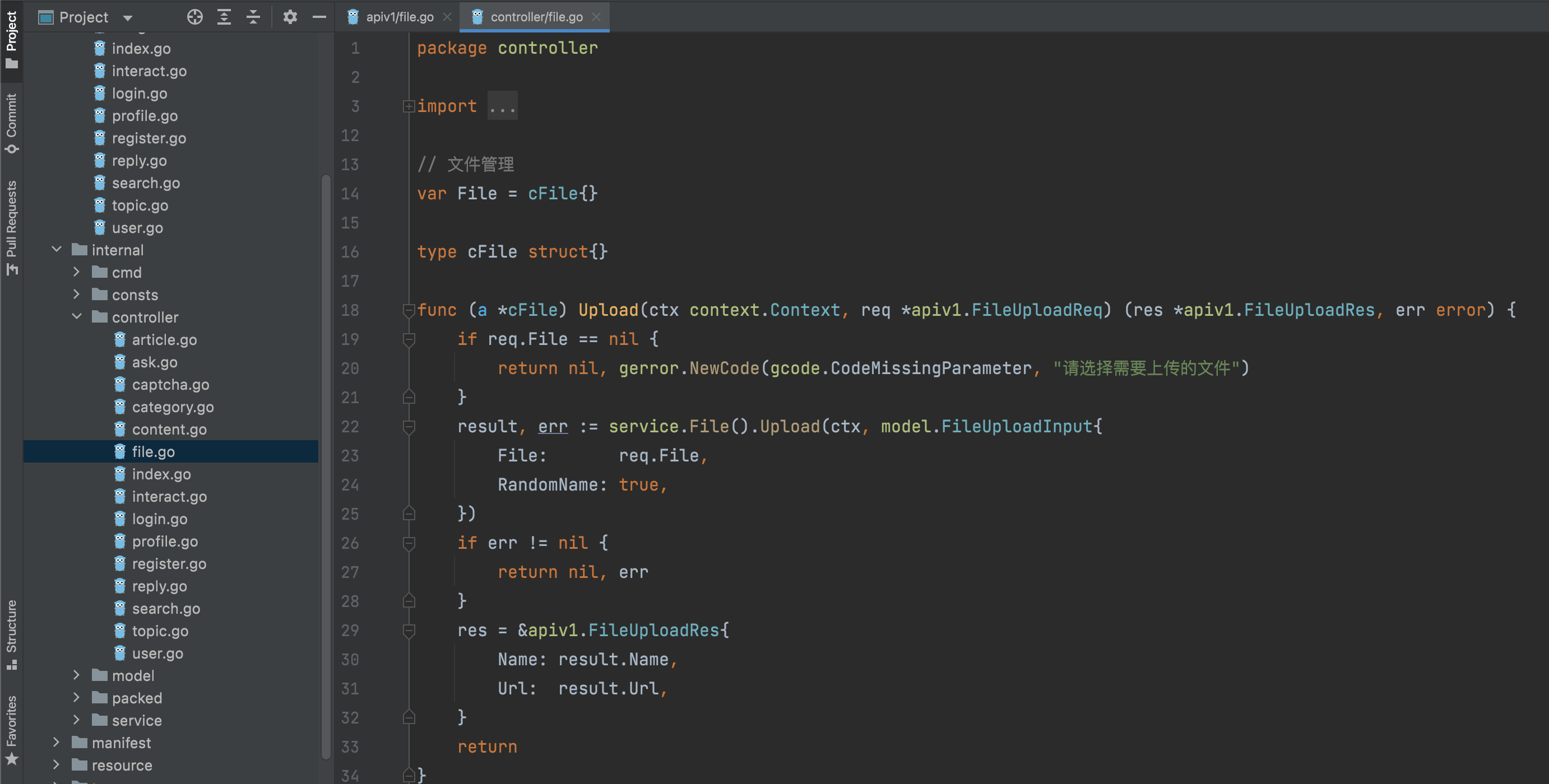 r.GetUploadFiles方法获得上传的所有文件对象,也可以通过r.GetUploadFile获取单个上传的文件对象。 - 在
