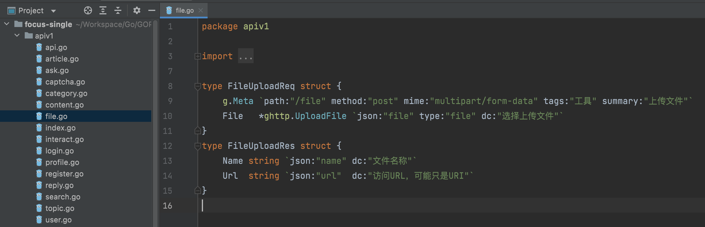 *ghttp.UploadFile - 如果需要接口文档也支持文件类型,那么参数的标签中设置