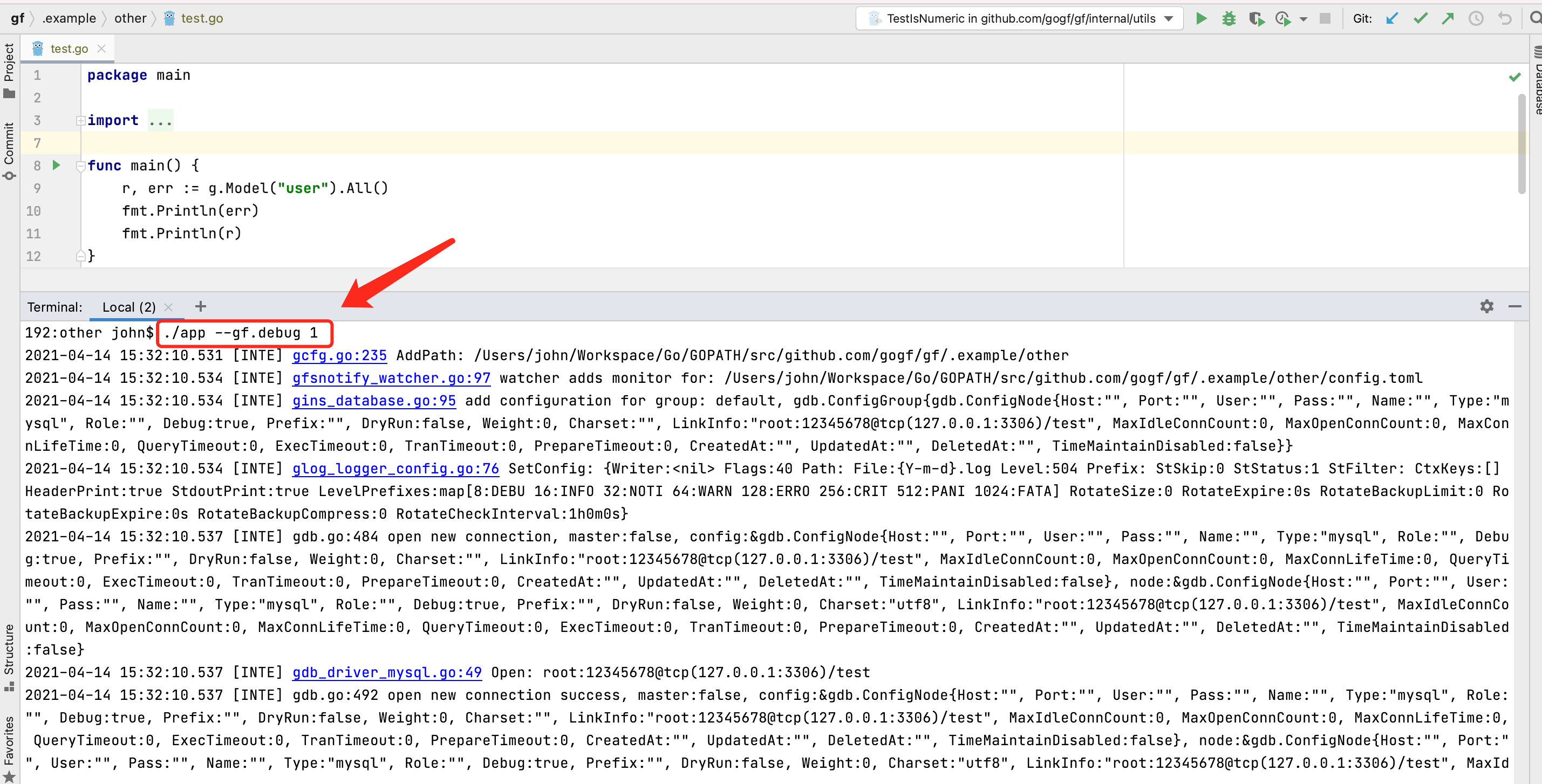 2021-04-14 15:24:52.954 [INTE] gdb_driver_mysql.go:49 Open: root:12345678@tcp(127.0.0.1:3306)/test