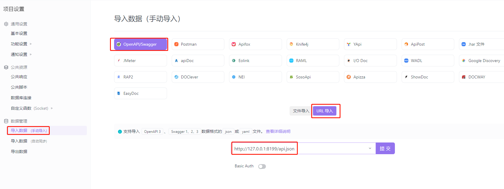 提示:最新版本的 SwaggerUI 页面已经不支持接口测试功能,可以导入 api.json 到第三方工具(例如 apifox)进行测试: