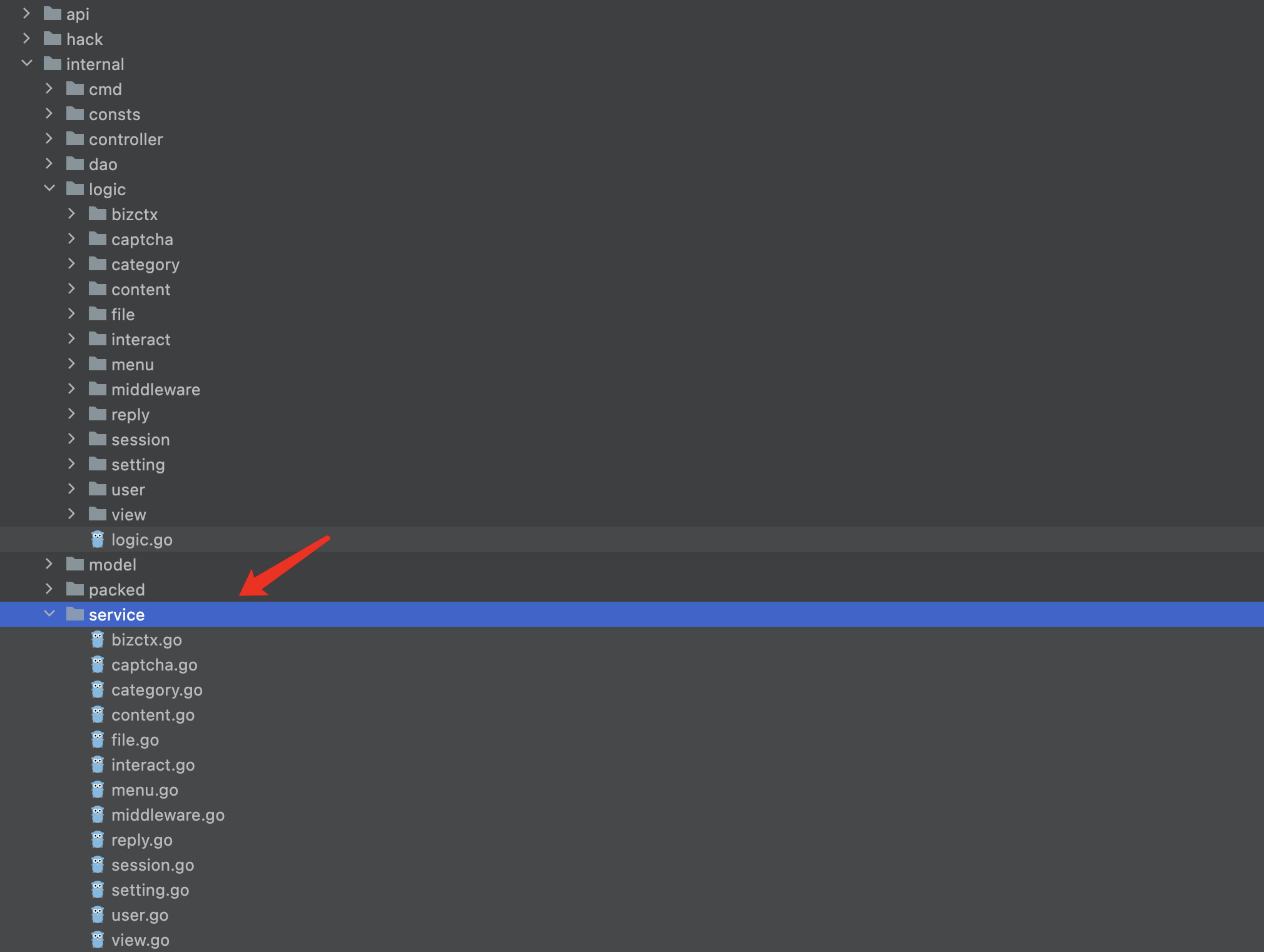1. 由于该命令是根据业务模块生成 service 接口,因此只会解析二级目录下的 go 代码文件,并不会无限递归分析代码文件。以 logic 目录为例,该命令只会解析 logic/xxx/*.go 文件。因此,需要 logic 层代码结构满足一定规范。