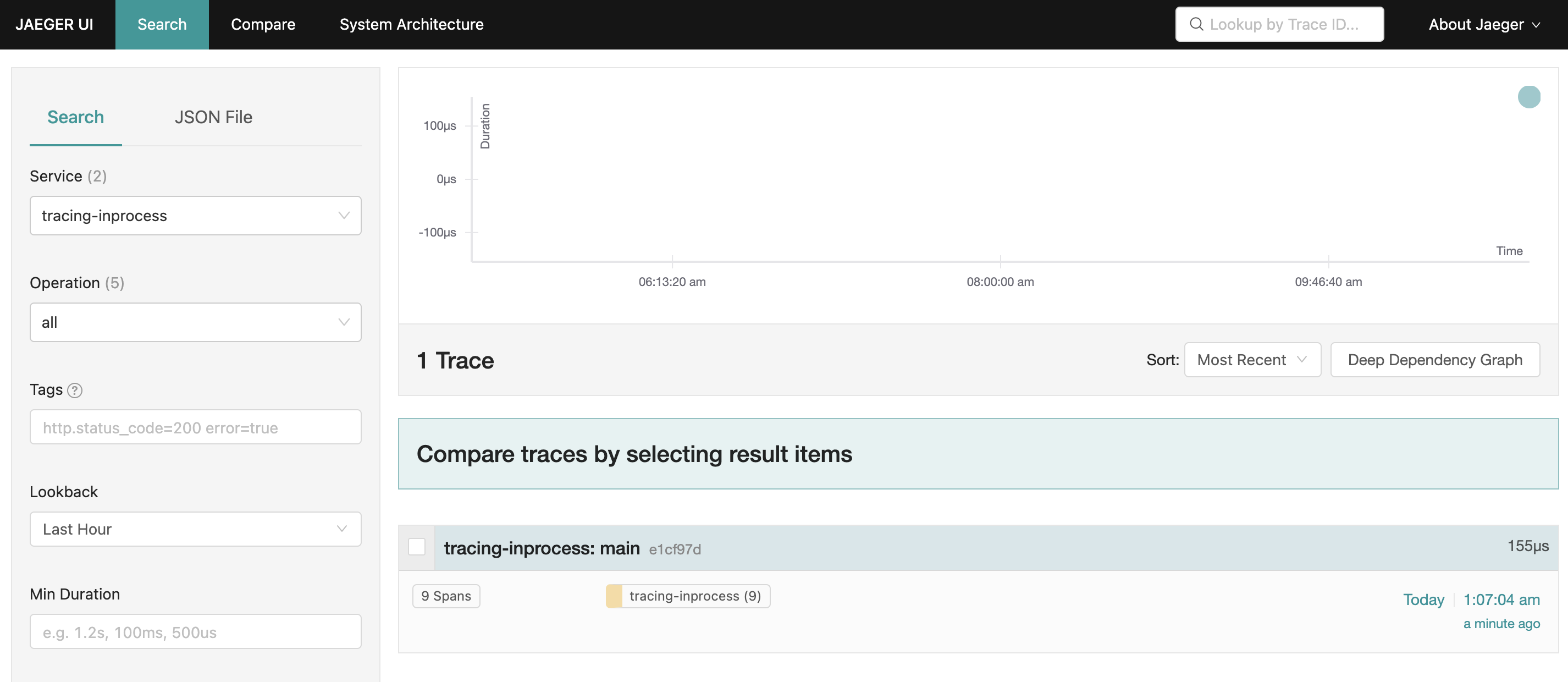 打开 Jaeger UI: http://localhost:16686/search,可以看到链路追踪的结果: