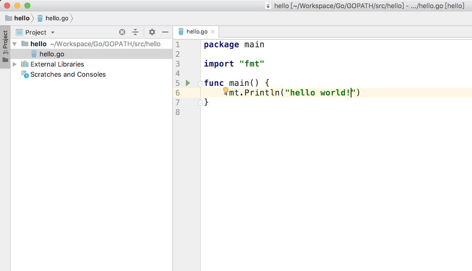新建一个 go 文件,叫做 hello.go,并输入以下代码: