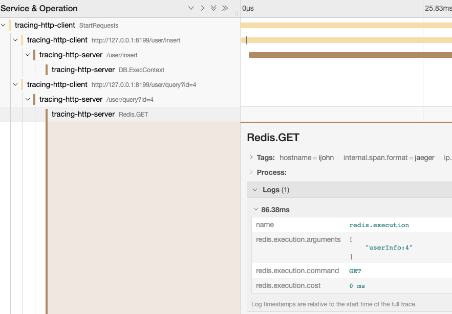 再把上面的客户端运行一下,查看 jaeger