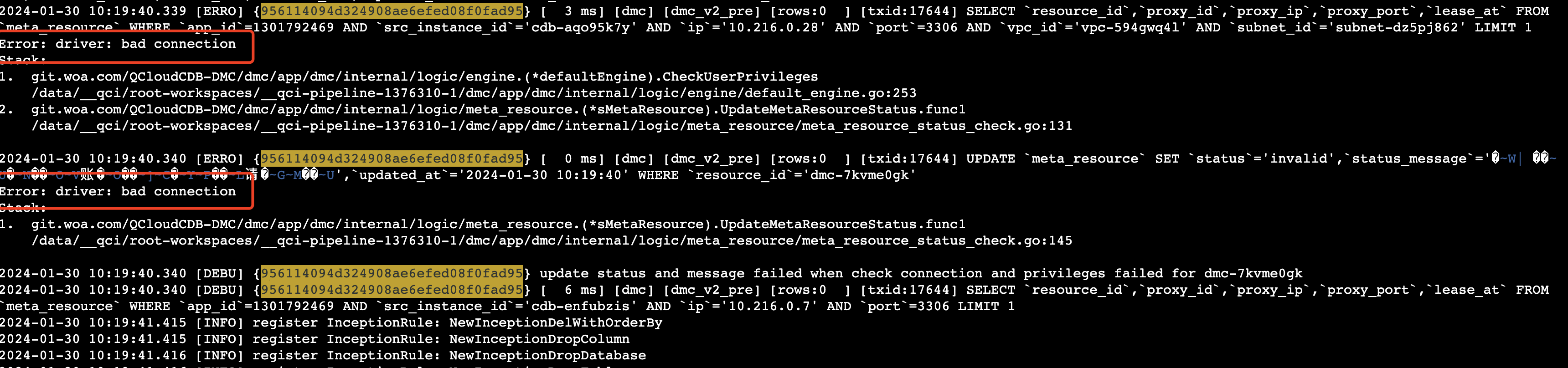 如果数据库执行出现该错误,可能是由于本地数据库连接池的连接已经过期,可以检查一下客户端配置的 MaxLifeTime 配置是否超过数据库服务端设置的连接最大超时时间。更多客户端配置请参考章节: ORM使用配置