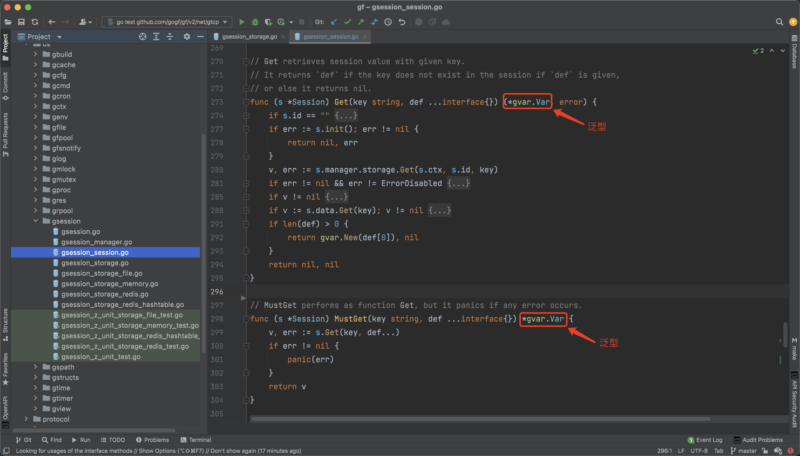 组件的接口化设计可扩展性是很高的,但是在具体落地的时候需要结合泛型来实现更灵活的使用。同样拿 gsession 组件举例,参数的返回均采用了泛型,在业务使用时根据需要再转换为对应的数据类型。