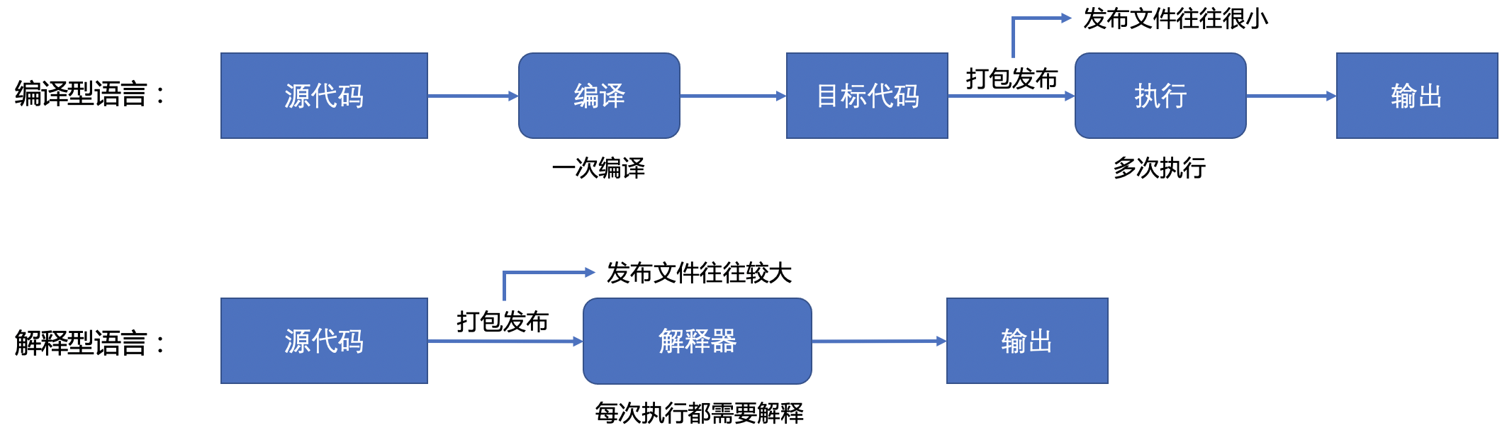 main包为入口,编译器会自动分析源码并将所有逻辑依赖模块中对应的资源进行编译处理,最终生成为静态二进制文件进行发布,自身源文件以及依赖模块(逻辑依赖)的源文件只在编译阶段使用,源码文件并不会直接用于发布,如:C/C++、Golang、Rust等。 - 解释型语言:往往会将自身源文件(或中间码)以及依赖模块的源文件(或中间码)全部进行打包发布,例如:PHP、Java、NodeJS、Python等。这个时候,依赖模块的源码大小对于项目发布来说影响会比较大。并且,打包时候的模块依赖处理并不会检查"逻辑依赖",只要依赖配置文件中存在指定模块,那么该模块都会被共同打包发布。假如模块中有10万个函数,即使其中只有一个函数被使用到,该模块所有函数将被共同打包发布。因为解释型语言在代码发布前并没有"编译-汇编-链接"等阶段,只能在运行时对源码及模块依赖做完整解析处理。特别是PHP/Java转Go的同学,这一块的思维需要转变适应。