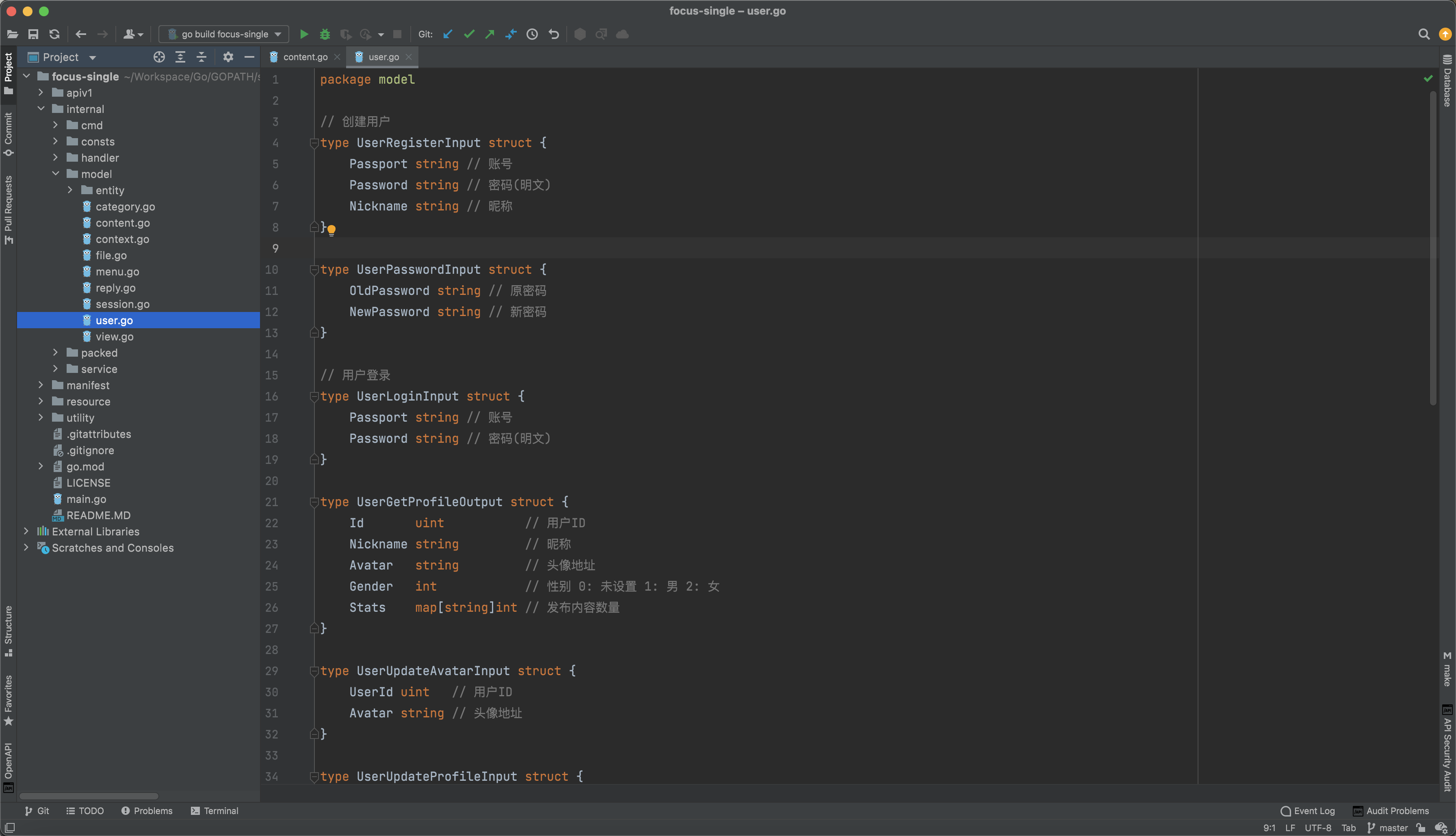 还有内部私有的模型,用于模块内部调用,例如在 service 各个业务模块内部定义的模型,用于内部逻辑,不对外公开。