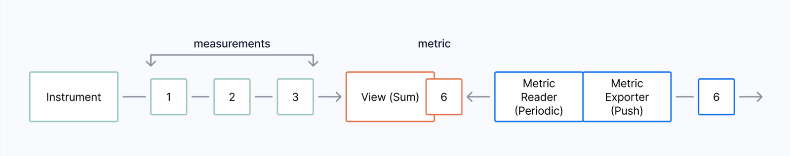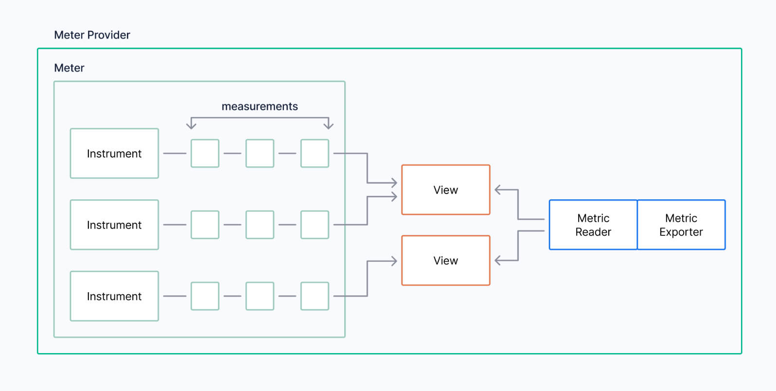 我们来看一张 OpenTelemetry 组件的关系图,在 OpenTelemetry Metrics 标准的实现中,主要包含以下组件。