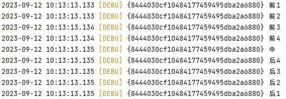 分组路由中间件是绑定到分组路由上的服务方法,不存在路由规则匹配,因此只会按照注册的先后顺序执行。参考后续示例或如下代码的执行结果。