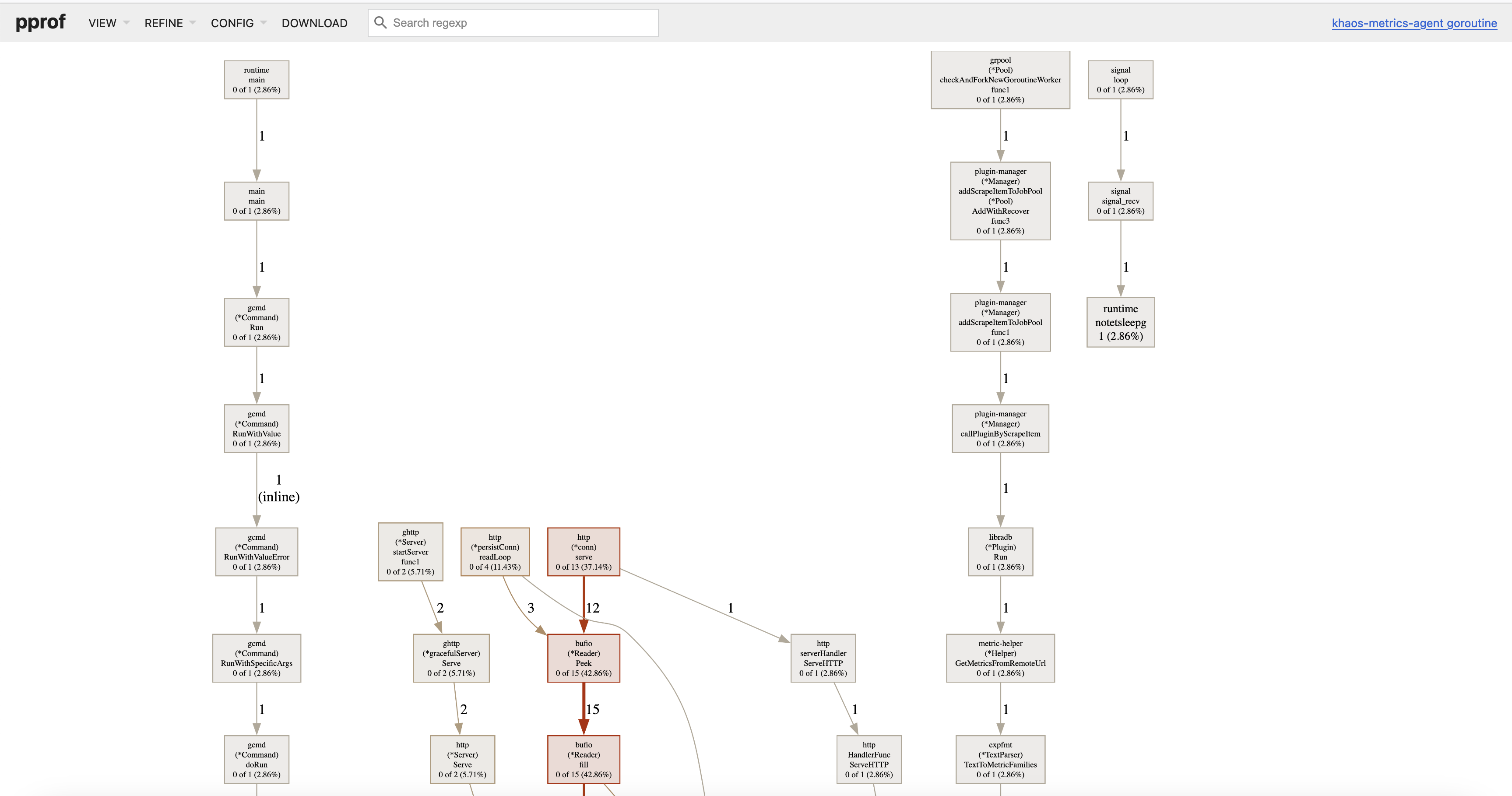 $ go tool pprof -http :8080 "http://127.0.0.1:8199/debug/pprof/goroutine"
